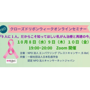 10月9日(木)乳がんってどういう病気?診断治療までの基本の”き”